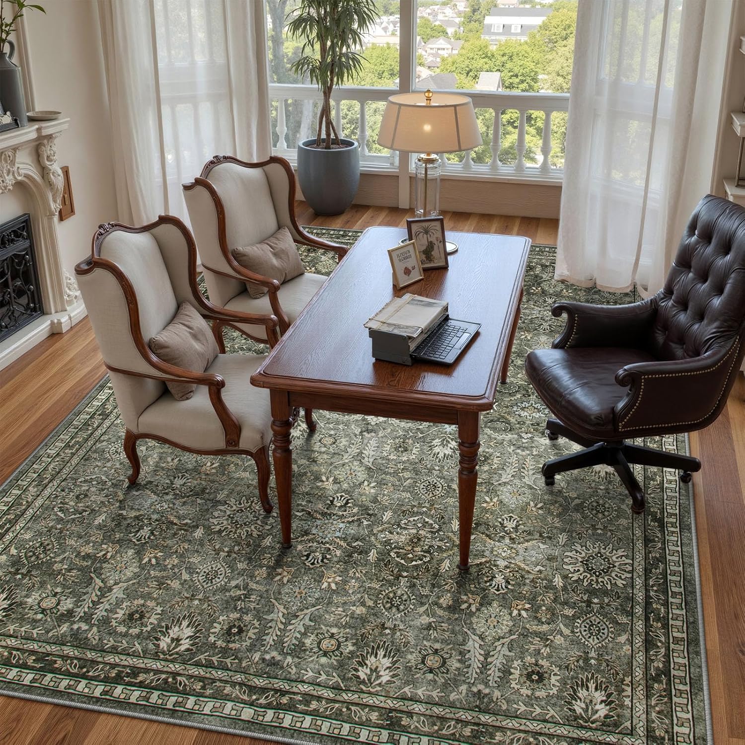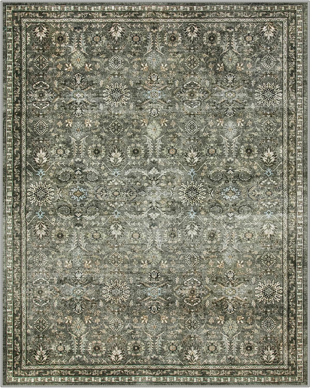 Lahome Green 8×10 Rugs for Living Room, Boho Washable Area Rugs for Bedroom, Rubber Backed Non Slip Floor Carpets for Dining Room Home Apartment, Dark Olive Green