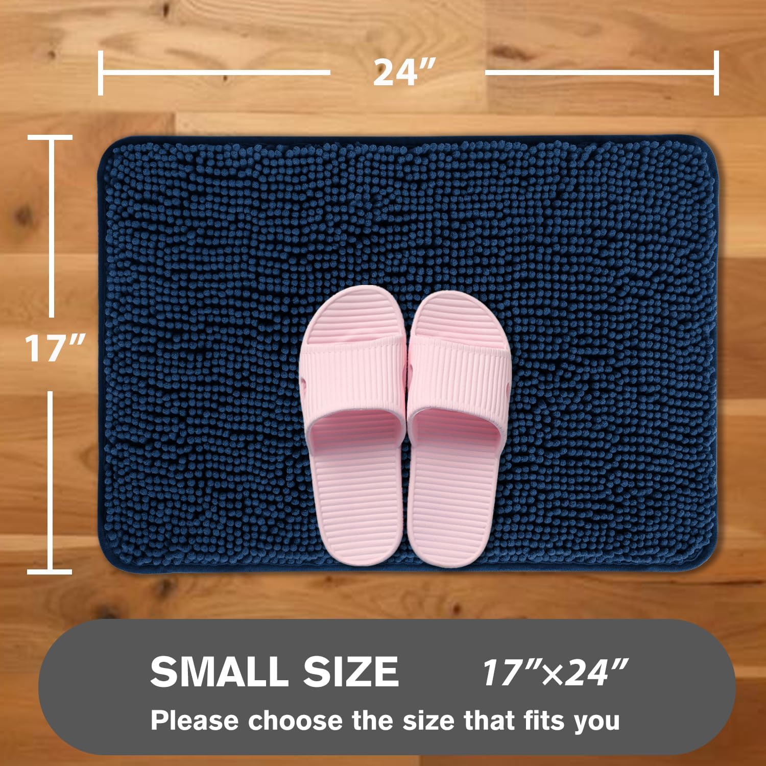 Introducing our Navy Blue Bathroom Rugs – the perfect combination of functionality and style for your bathroom space. Our absorbent and washable bath mat is designed to keep your bathroom floor dry and safe, while adding a touch of elegance with its navy blue color. Made from thick, soft chenille, these bath rugs provide a plush and comfortable feel under your feet. Featuring a non-slip backing, these rugs stay securely in place to prevent slips and falls, making them ideal for use near the shower, sink, or any other wet areas in your bathroom. Measuring 17″ x 24″, these bath rugs are the perfect size for most bathroom spaces, adding a pop of color while serving a practical purpose. Easy to clean and maintain, simply toss them in the washing machine for a quick refresh. Upgrade your bathroom decor with our Navy Blue Bathroom Rugs – a stylish and functional addition to any home.